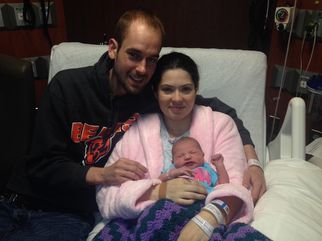 Miravete was originally due Jan. 7, but her doctor decided to induce her at 9 a.m. on New Year’s Eve. “We were expecting her to be born by 4 p.m., but it ended up taking 15 hours,” she said.