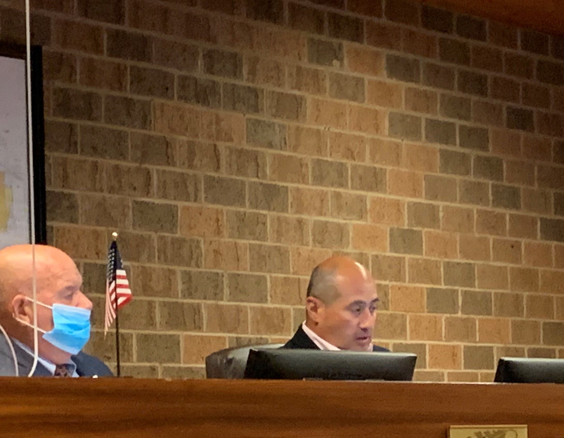 Burr Ridge Trustee Guy Franzese (left) is at Monday's Village Board meeting, sitting next to Trustee Tony Schiappa. Franzese said afterward that he accepted the police department's conclusion that Capri Express was not involved in an incident. (David Giuliani/Patch)