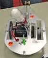 The aluminum car has three wheels made of mini-dvds. A tiny white balloon filled with hydrogen connects to a fuel cell, which uses electricity to power the car. Burgess and his teammates from Hadley Junior High in Glen Ellyn named their car “Freddy.”