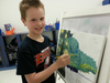The assignment was to help the drama team put on a play in May by creating an art gallery. When the play was postponed, first- and second-graders kept right on painting.