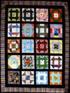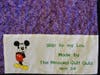 The Log Cabin Quilters of Minooka created the “Skip to My Lou” quilt named after the children’s song. The quilt itself echoes the free-spirited and colorful way that children play. With its bright yellow and red hues, and black contrast in simple block, the quilt has a festive, carnival-like theme. The edge border with colorful striping is multi-hued like the rest of the quilt, and gives added interest to the overall design. The quilt is currently hanging behind the information desk at the