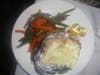 I ordered the Pan Seared Sea Scallops, which came in a lemon butter with garlic, artichokes, roasted red peppers and a baked potato. I was impressed with everything except one...the sea scallops were chewy on the edges. I don't know if this happens because they seared on the pan too long or if it because they got too much air, a suggestion my dining companion offered. Everything else was phenomenal.