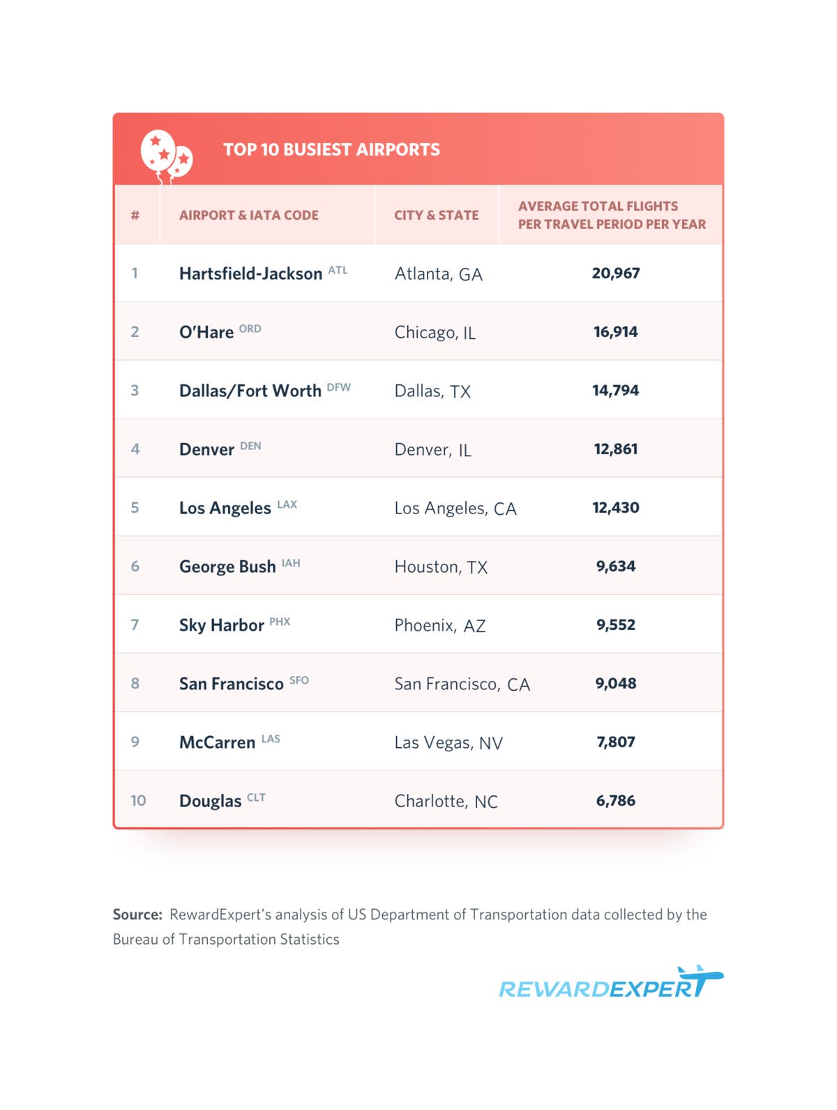 Data Source: Department of Transportation Bureau of Transportation Statistics analyzed by RewardExpert.com