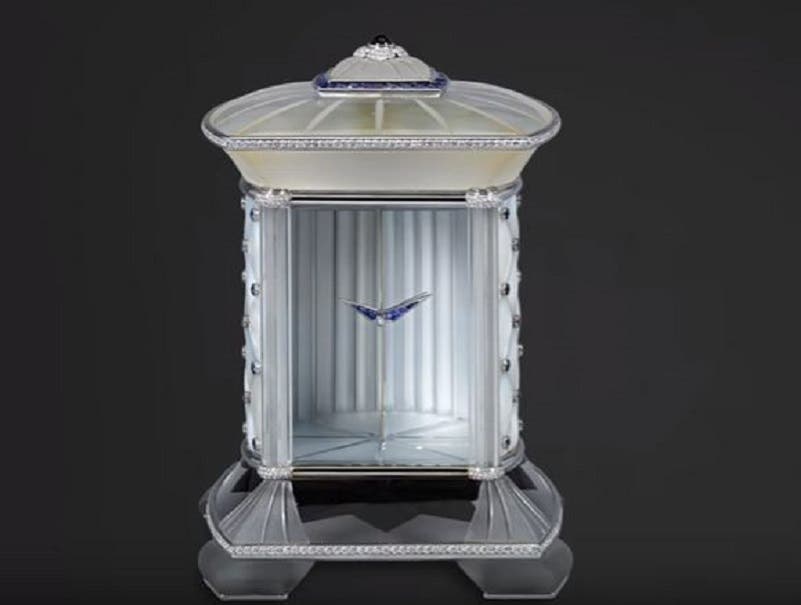 The Asprey & Company mystery clock that was reported stolen from an antique dealer's booth Sunday, May 21, during the Chicago Antiques + Art + Design Show at the Merchandise Mart. (Screen shot via video by M.S. Rau Antiques | YouTube)