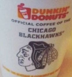 The cups are common in the Chicago area since Dunkin’ Donuts is a partner with the Blackhawks.