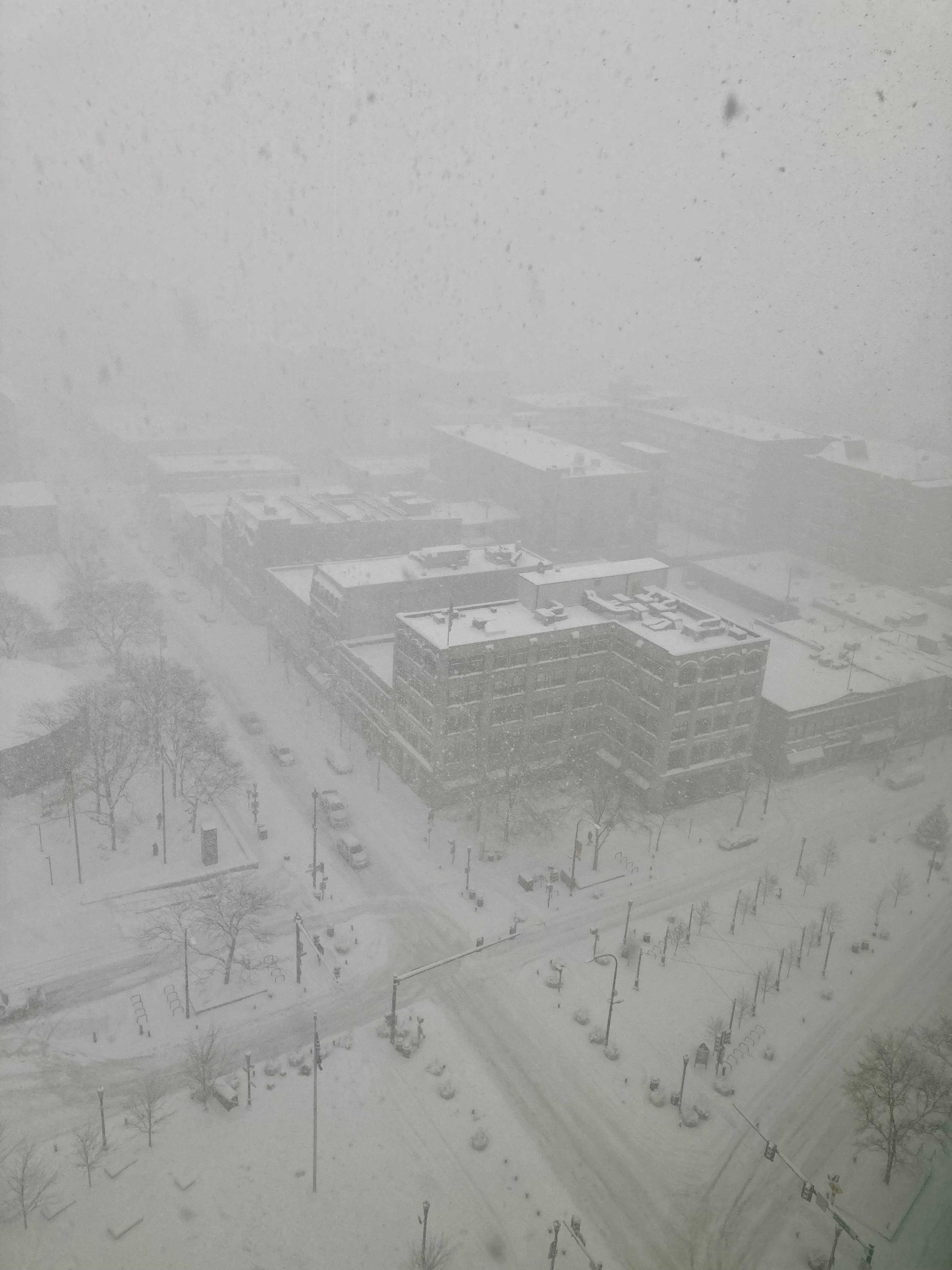 Fred Tanenbaum took this photo of the view from his window of Evanston Fountain Square.