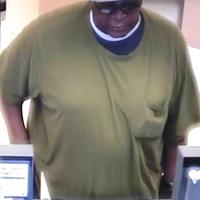 The offender is bald, 5’10” to 6’0” in height and about 6 feet tall. He was wearing a black flat-billed hat, green t-shirt, glasses and dark colored pants during what is being described as a “non-takeover” bank robbery.