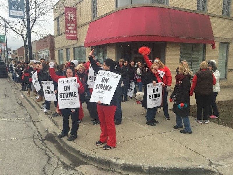 Chicago teachers hold a one-day walkout in April of 2016. (photo via Patch archive)
