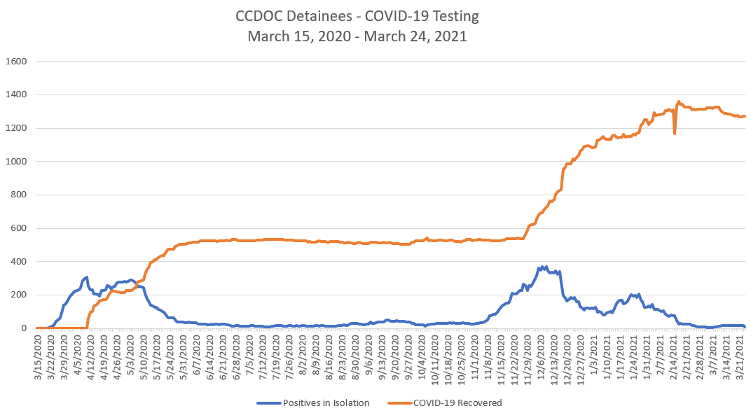 The sheriff's office conducts more than 1,500 tests a week, with more than 1,200 detainees tested every week since February, according to its website.
