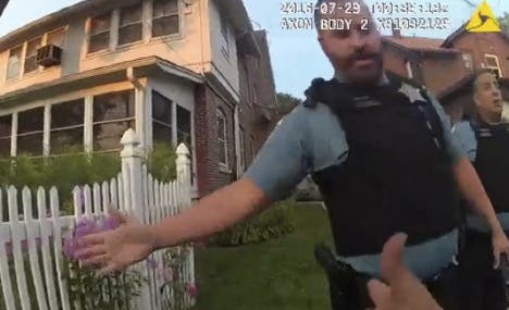 An officer is also seen pointing to a body camera and saying, "make sure this is off." Another complained he would be put on "goddamn desk duty" for 30 days.