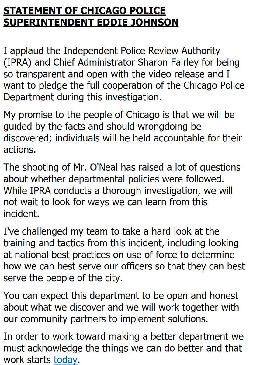 While this case remains fluid in nature, it is of critical importance to every Chicagoan to not rush to judgment and to allow the systems in place to play out.