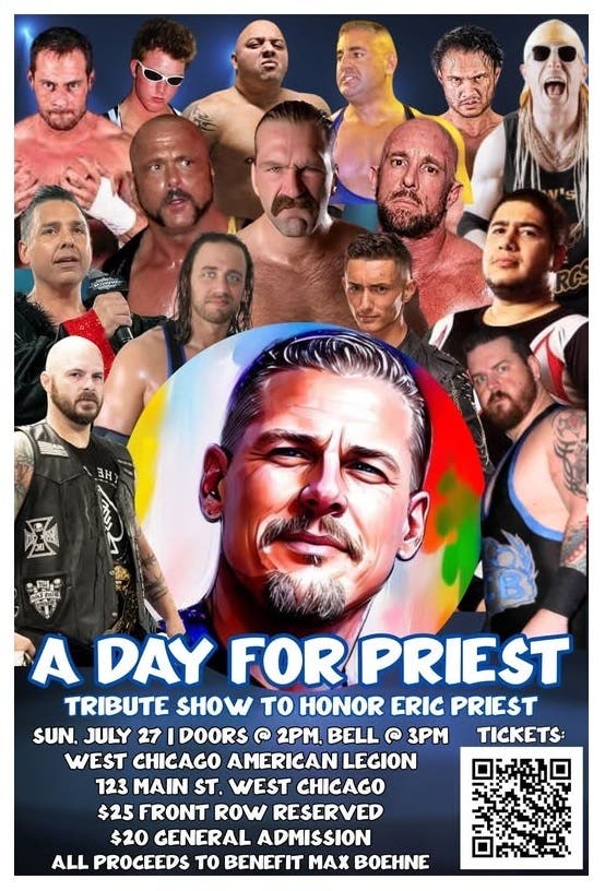 The wrestling community has come together to create A Day For Priest, a benefit wrestling show with all proceeds going to his son, Max. A Day For Priest takes place Sunday, July 27, at the West Chicago American Legion.