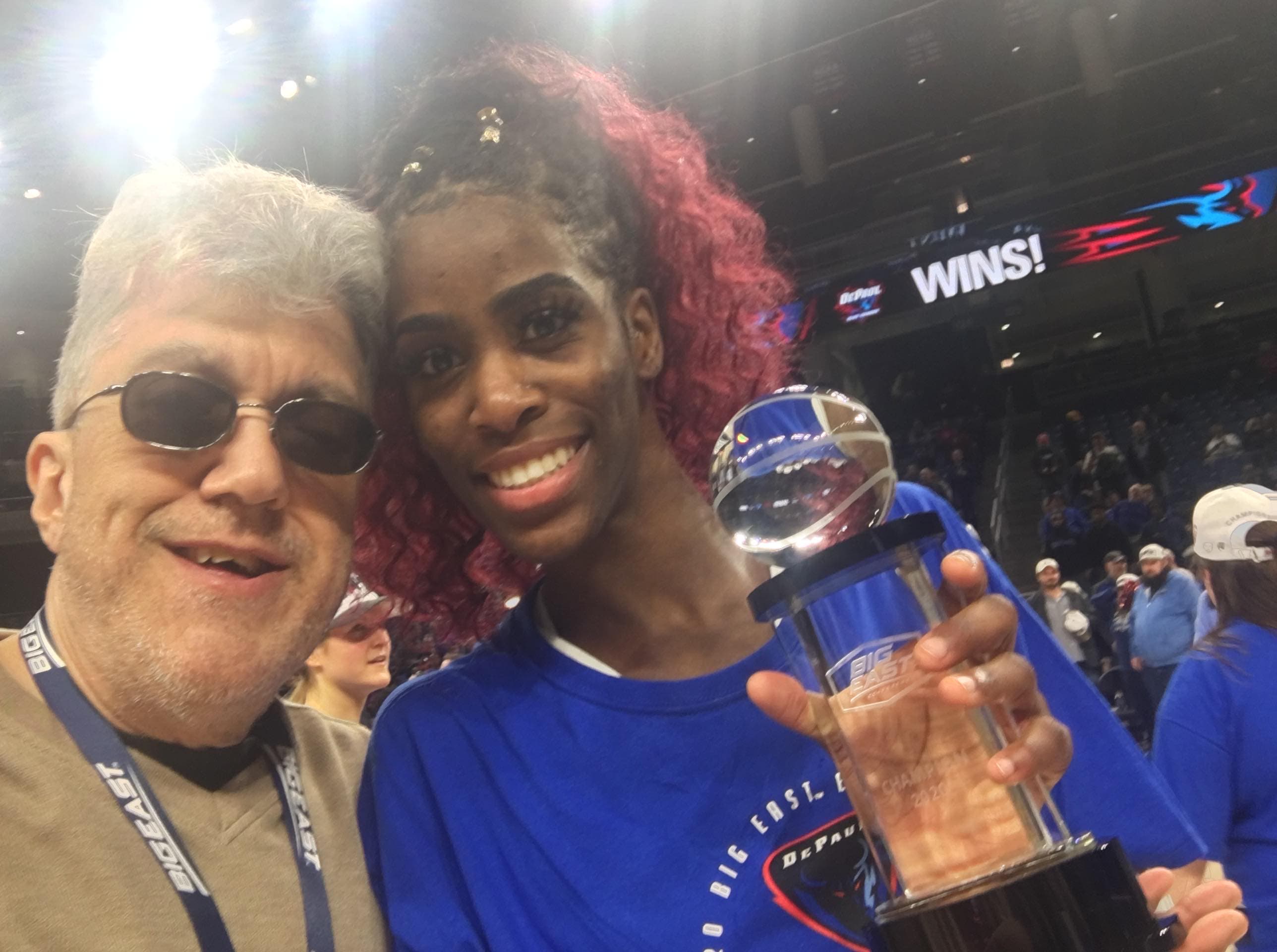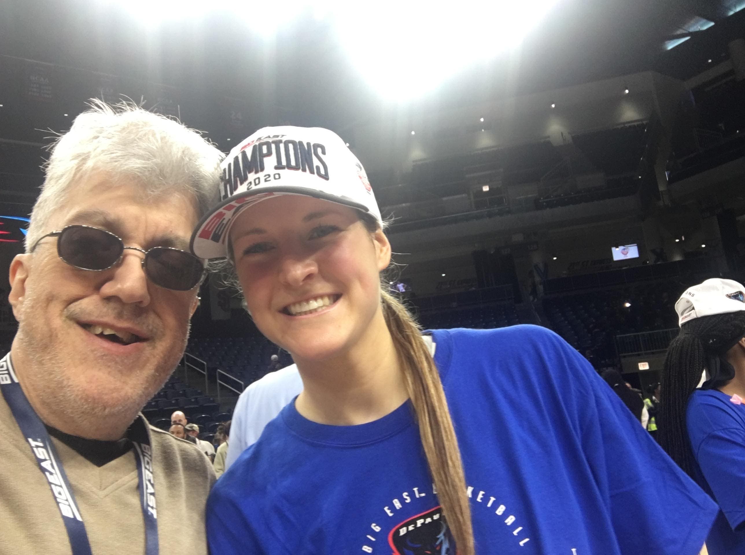 I watched these elite athletes up close from the press table and then joined them on the court for the post-game celebration. I followed the Blue Demons all season at games and practices, seeing how hard they work. It was moving and heartwarming seeing players hugging each other, along with family and friends. I was a proud alum as I soaked in the celebration.