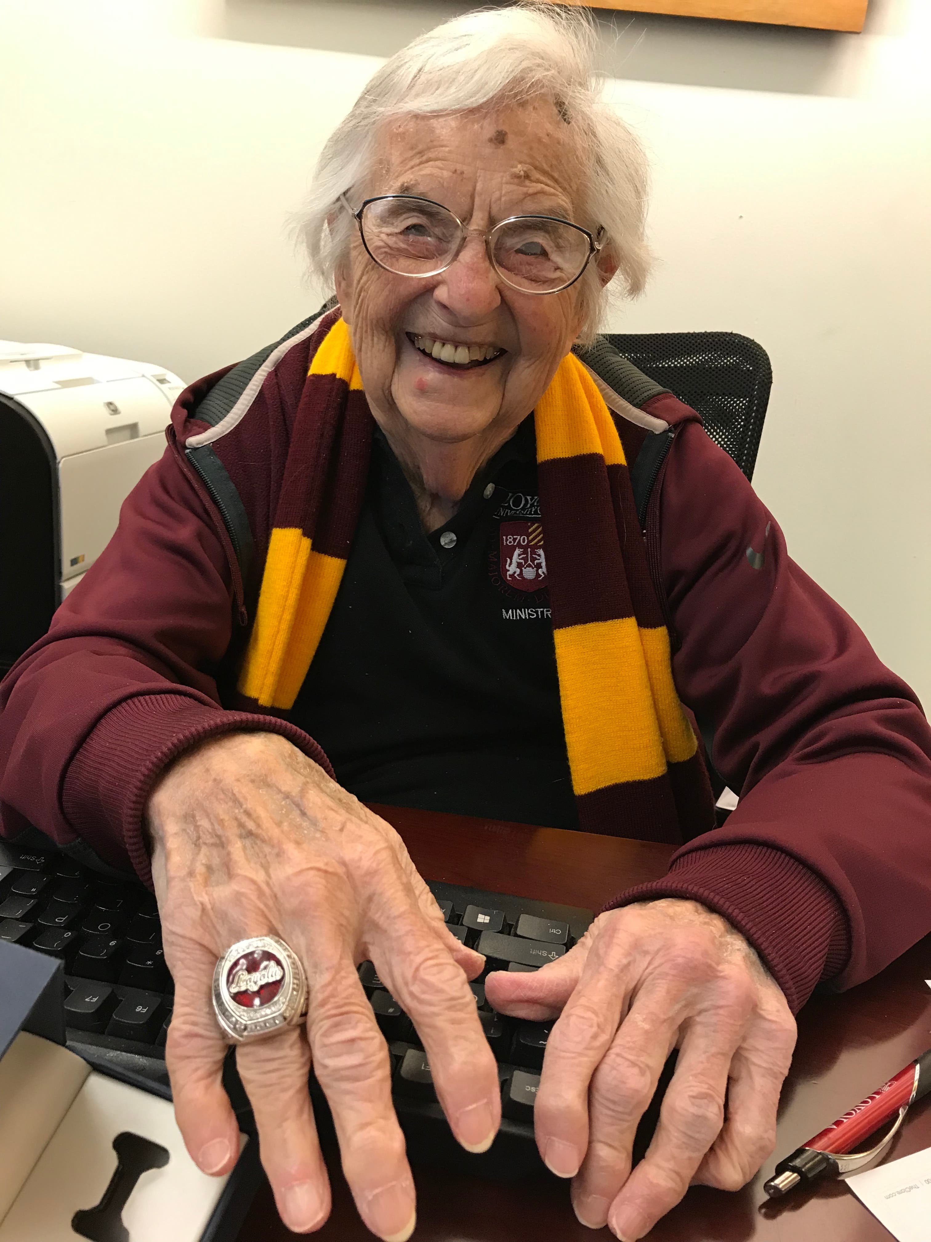 “They do keep me young and they keep me informed of what’s happening,” Sister Jean said. “I learn new words all the time. Some of them are good, some not so good, but I learn them.”