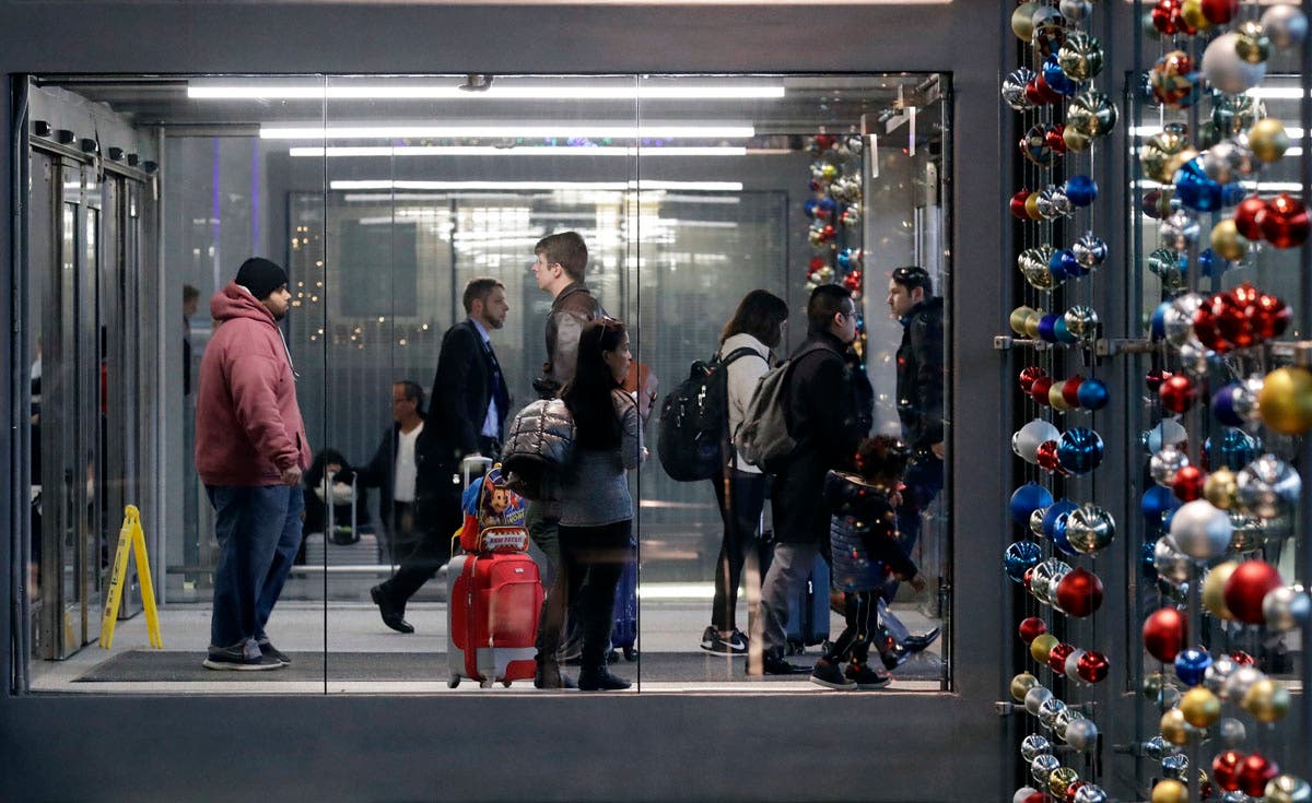 Travelers walk in and out at Terminal 3 in O'Hare airport in Chicago. (AP Photo/Nam Y. Huh)