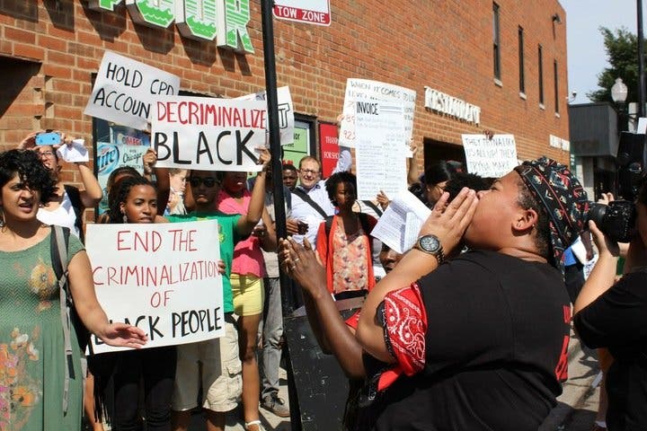 Many of the protesters came from a group called BYP100, a grassroots collective of community organizers focused on transformative leadership and advocacy to address racial justice in Chicago and beyond.
