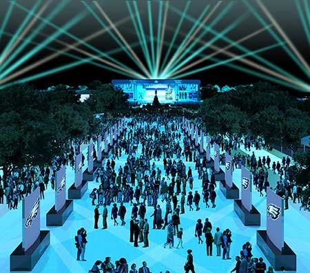 Calling it the NFL Draft Experience, a half-mile stretch of the Parkway has been converted into a massive, in-depth, family-friendly football festival, with interactive exhibits, games, virtual reality experiences, player autographs and much more.
