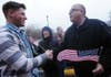 Waiting for Mann were friends, family, veterans and even strangers willing to hold flags in the cold to welcome a hometown hero. As Mann jumped off the fire truck, he was greeted with applause and hugs. A party was waiting inside the legion post.