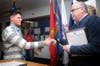 Anthony Marmo from Warriors Watch Riders then presented Mann with honor beads, and Denny Tobleck from Oak Forest, representing Soldiers Guardian Angels, gave him a certificate along with hugs.