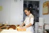 Aurelia Fetz works in the bakery and she stocked display case shelves with conchas -- sweet bread with colorful shell-patterned sugar topping. She lined them by color pink, white and brown.
