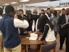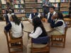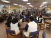 U.S. Congresswoman Robin Kelly held a "book drop" at the Bloom Trail High School library and talked politics with student ambassadors.