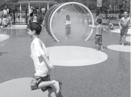 Located outside the David and Karen Stover Visitors Center at Phillips Park, the facility is designed for children under age 13 to play in jets of water.