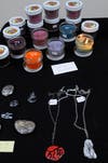 They have many items for sale including jewelry, blown glass, holiday crafts, hand-painted ornaments, pottery, photography, watercolor and pastel paintings, colored pencil drawings, oil paintings, knitted ad fabric items, prints, and cards.
