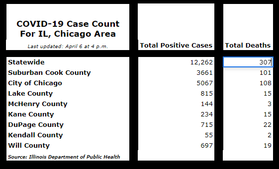 CHICAGO, IL — Health officials are urging residents to do their part in "flattening the curve" as the number of coronavirus cases and deaths continue to rise. As of April 6, 12,262 people across the state have tested positive for COVID-19 and 307 have died from the virus.