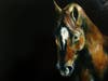The work of Connie Sonnenberg, winner of the “Best of Acrylic 2012” at Barrington’s Art in the Barn, primarily reflects the world of equestrianism. She wishes to depict the horse as a creature of great dignity. When describing the painting “Attitude,” she shares her “desire to capture the movement and attitude of this beautiful animal with personality and wisdom while he runs free.”