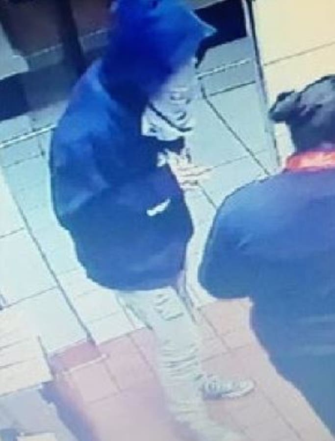 Authorities are asking for the public's help in tracking the man down. His height and weight are not known. Police said he was wearing a light-colored cloth across his face, dark blue-hooded sweatshirt, tan/khaki-colored tight pants and gray-colored 'Chuck Taylor' type shoes, according to the news release. The suspect also had a tattoo on his left index finger that looks like a No. 1.