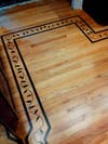 The expensive look of intricate inlay on a wood floor can be easily done with stain and patience.