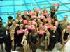 Thursday night was also a night to honor the team's senior class which includes Kelsey Barry, Nicole Beilke, Chloe Belczak, and Gabby Dupont. Escorted by their parents, each girl was honored by all their teammates who lined the pool deck. Hugs and flowers filled their arms and feather boas were placed around their necks. It was a very touching sight.