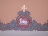 The gold leaf crosses were color matched and gilded completely instead of just patched in. This guaranteed a perfect color consistency. Three of the eight ceiling icons were redesigned by Fr. Frank after I restored the art. Small changes were made to the design to enhance the message.