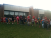 Members of the EJH student body, faculty and parents brought well-wishes to the Cross Country Runners who qualified for the IESA State Meet by participating in a Fun-Run yesterday after school.