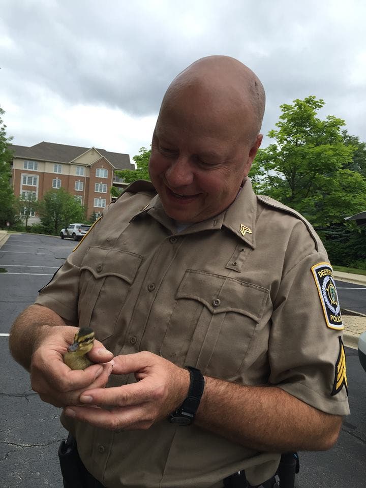 Photo: Sgt. McCowan with one of the ducklings he helped save / Deerfield Police