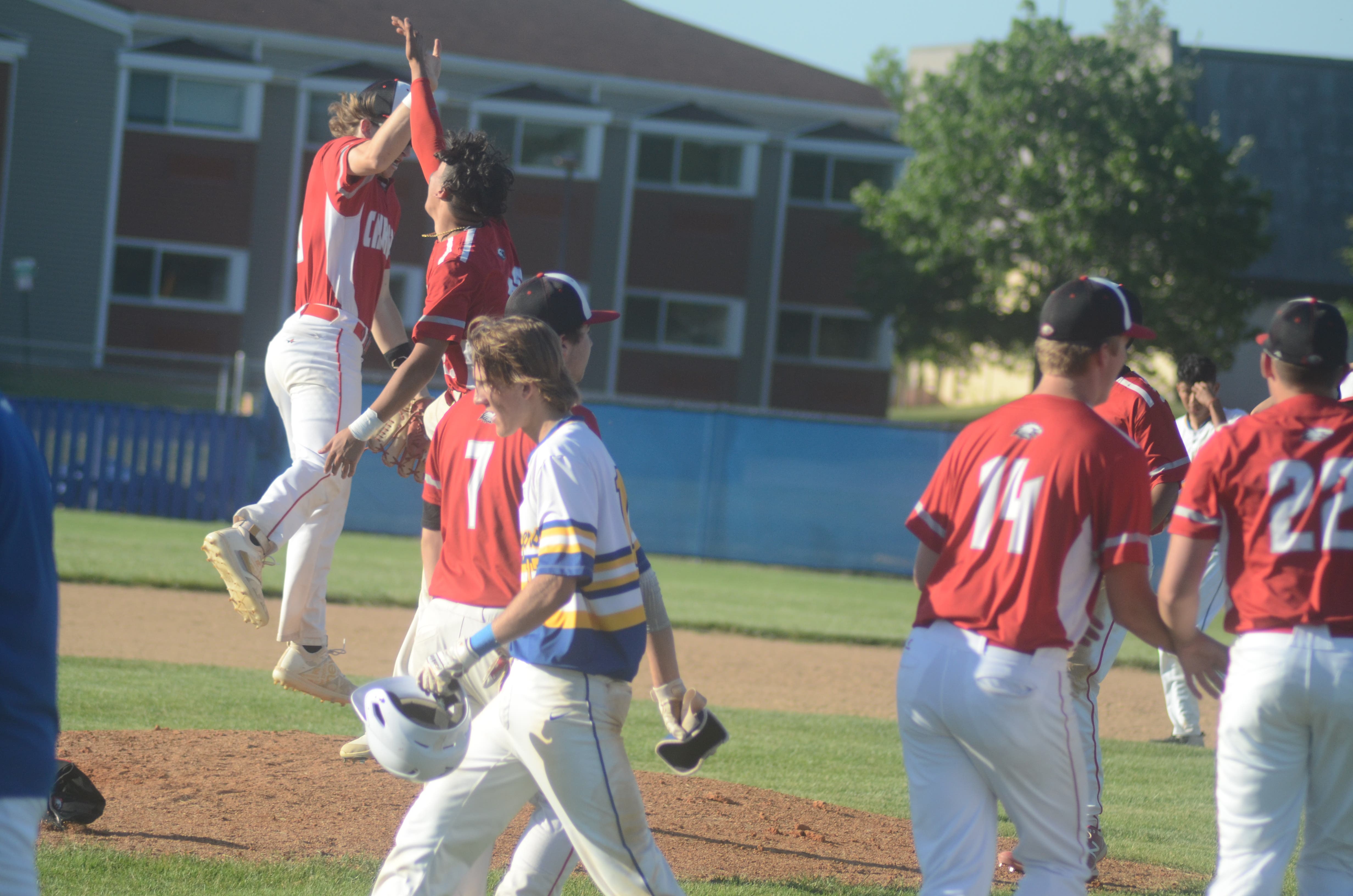 Al Benson took this one of Aurora Christian Schools baseball players celebrating their 9-4 IHSA regional win at Aurora Central Catholic.