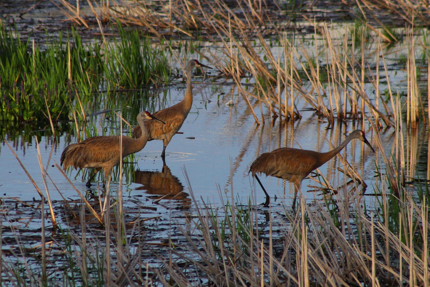 Meggan Sommerville took this photo of three sandhill cranes hunting for an evening meal in a small patch of wetland in Montgomery. She said, "It's great to see more and more sandhills visiting the Greater Fox Valley area."
