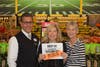 Park Ridge Jewel-Osco front end manager, Benny Velazquez, left, Maine Township Supervisor Laura J. Morask, center, Maine Township Food Pantry Director, Carol Langan meet at the Jewel to celebrate reaching the holiday fundraising goal.