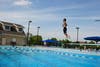 Caption: Mara Castillo(10) takes the plunge in the refreshing waters of Chippewa Pool.