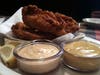 The chicken fingers were surprisingly good. I don't say that often. Most of the time chicken fingers are a blight on an otherwise good menu. However the oversized strips were extremely moist without being greasy, and were coated in a crispy batter which fell somewhere between heavy tempura and light chicken fried steak. The end result was a lot like a fish fry with a tasty chicken interior. The lemon wedges alongside dipping sauces only added to the effect. The twelve minute lunch menu includes an order of 3 with a side of fries.