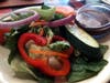 The salads were a reasonable lunch size with a single large chunk of carrot, cucumber, and red bell pepper atop a bed of lettuce. They came with a warm loaf of white bread topped with garlic salt. I found the bread fairly average, but my lunch companion couldn't stop eating it. The soft herbed butter with parsley and garlic did add nicely.