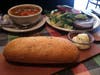 Both soups were impressively dense. Imagine a moist bowl of well seasoned vegetables interspersed with large chunks of white chicken. My bowl was so packed there was barely room for broth. The minestrone was equally dense - both rib sticking soups great for a cold winter day.
