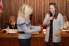 Township Supervisor, Laura J. Morask has the honor of presenting the TOI “Volunteer Award” to Samantha Lovett at Town Hall.