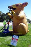 Strikers with Giant Inflatable Rat Refuse to Reveal Grievances