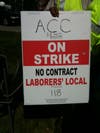 They carried signs that read "ACC Demo," "On Strike" and "No Contract," but refused to talk to a reporter.