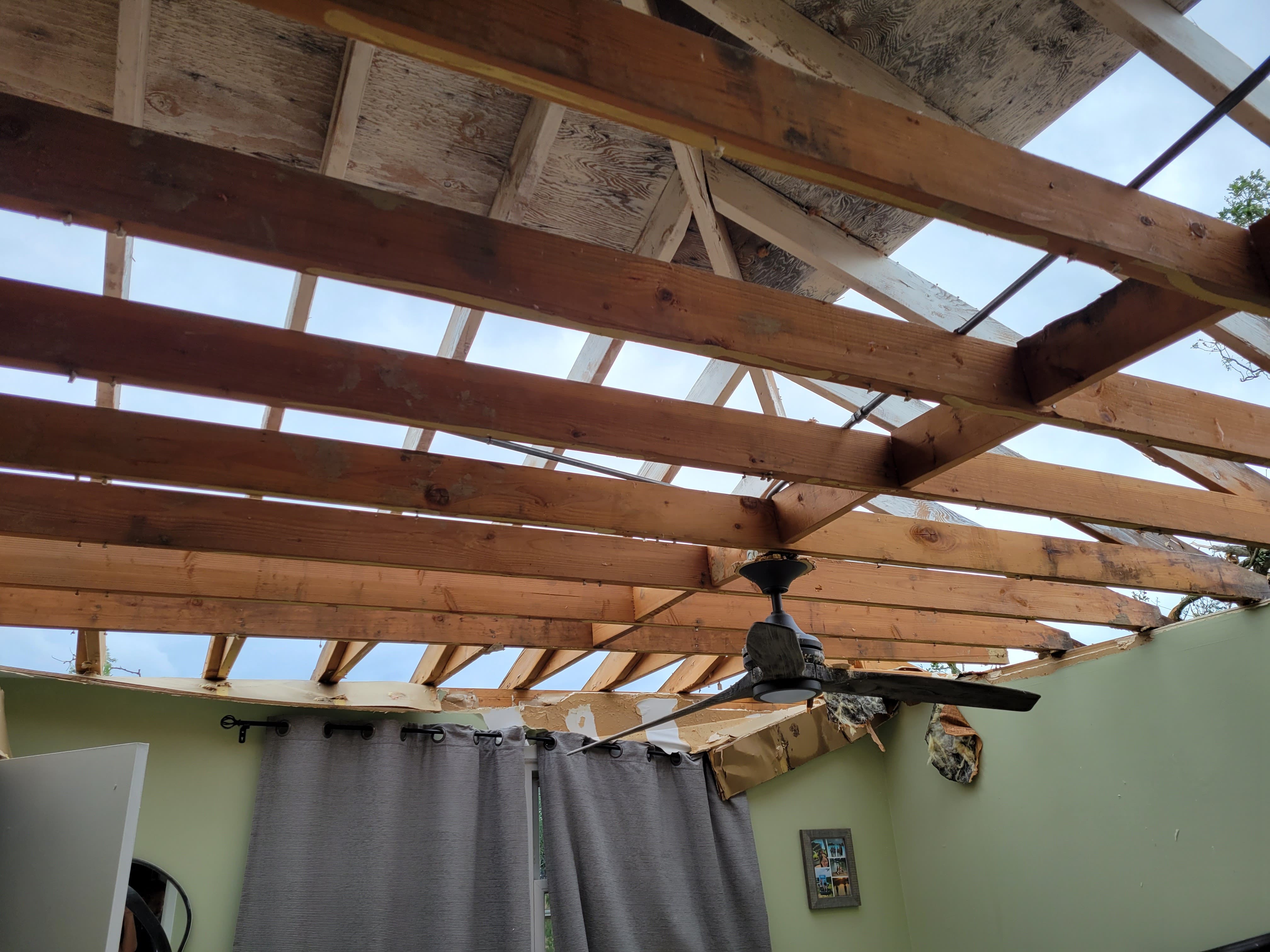 When they finally went back upstairs, "everything was soaked" and the "whole roof" had been ripped from over the home's bedrooms. “There’s nothing above you, just sky," Axelson said. Her kitchen cabinets had been tugged from the ceiling.