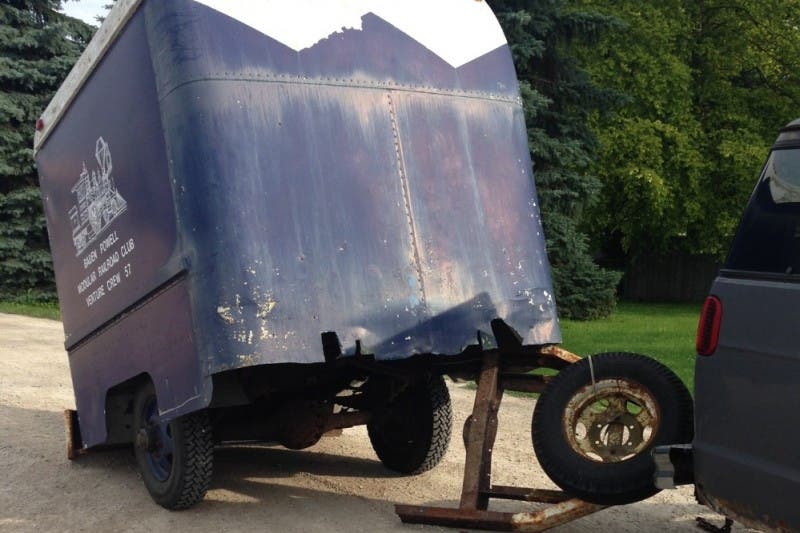 On the road to a model railroad show in Big Rock, Illinois, earlier this month, the 1953 bread truck that had been converted to a trailer for Venture Crew 57 to haul its modular layout around rusted through.