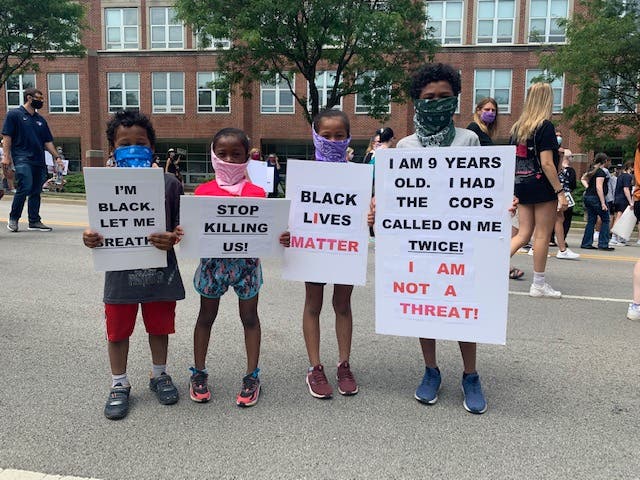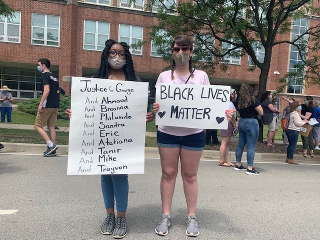 The protest began with remarks from community leaders before marching from Downers Grove North to St. Joseph Parish and back, chanting "Black Lives Matter." Along the way, residents were posted up with water and other refreshments for participants, in front of homes displaying their own signs for calling for justice and racial equality.