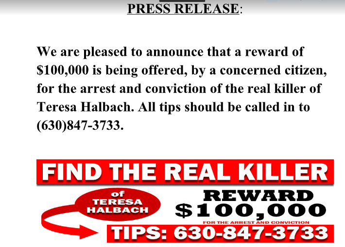 DOWNERS GROVE, IL — On Monday morning, just as she promised, Kathleen Zellner, the world-famous lawyer responsible for overturning the wrongful conviction of Steven Avery, made a big announcement. "We are pleased to announce that a reward of $100,000 is being offered, by a concerned citizen, for the arrest and conviction of the real killer of Teresa Halbach," Zellner revealed. "All tips should be called in to (630) 847-3733."