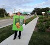Mrs. Podgorski and Principal Dr. Kyle VonSchnase had a blast taking turns in the Pie Costume. Both stood outside on Irving Park Rd in front of McDonald’s, directing the customers to the restaurant where they could buy a Hot Apple Pie.